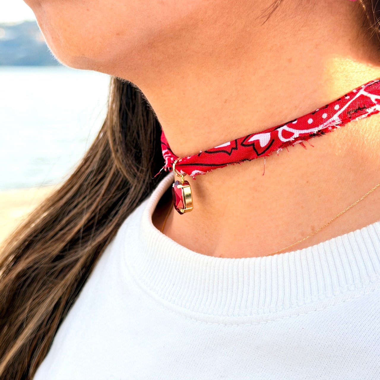 バンダナチョーカー ネックレス|レッド 赤|ハンドメイド