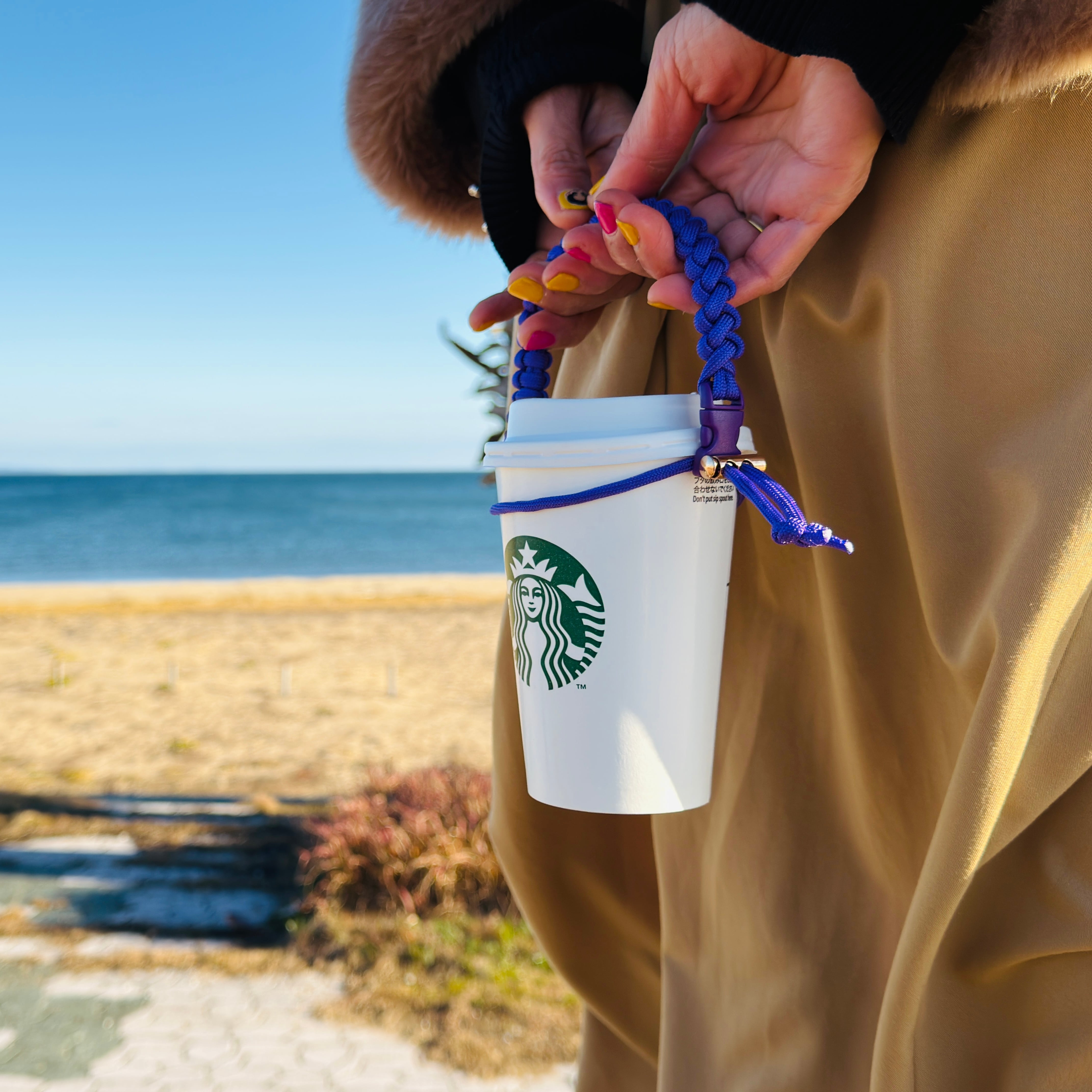このドリンクホルダーは、ひとつひとつ丁寧に作られたハンドメイド製品です。パラコードを使用し、しっかりとした作りで安心感があります。持つ人の個性を引き立てるアイテムとして、ちょっとしたプレゼントにも最適です。
