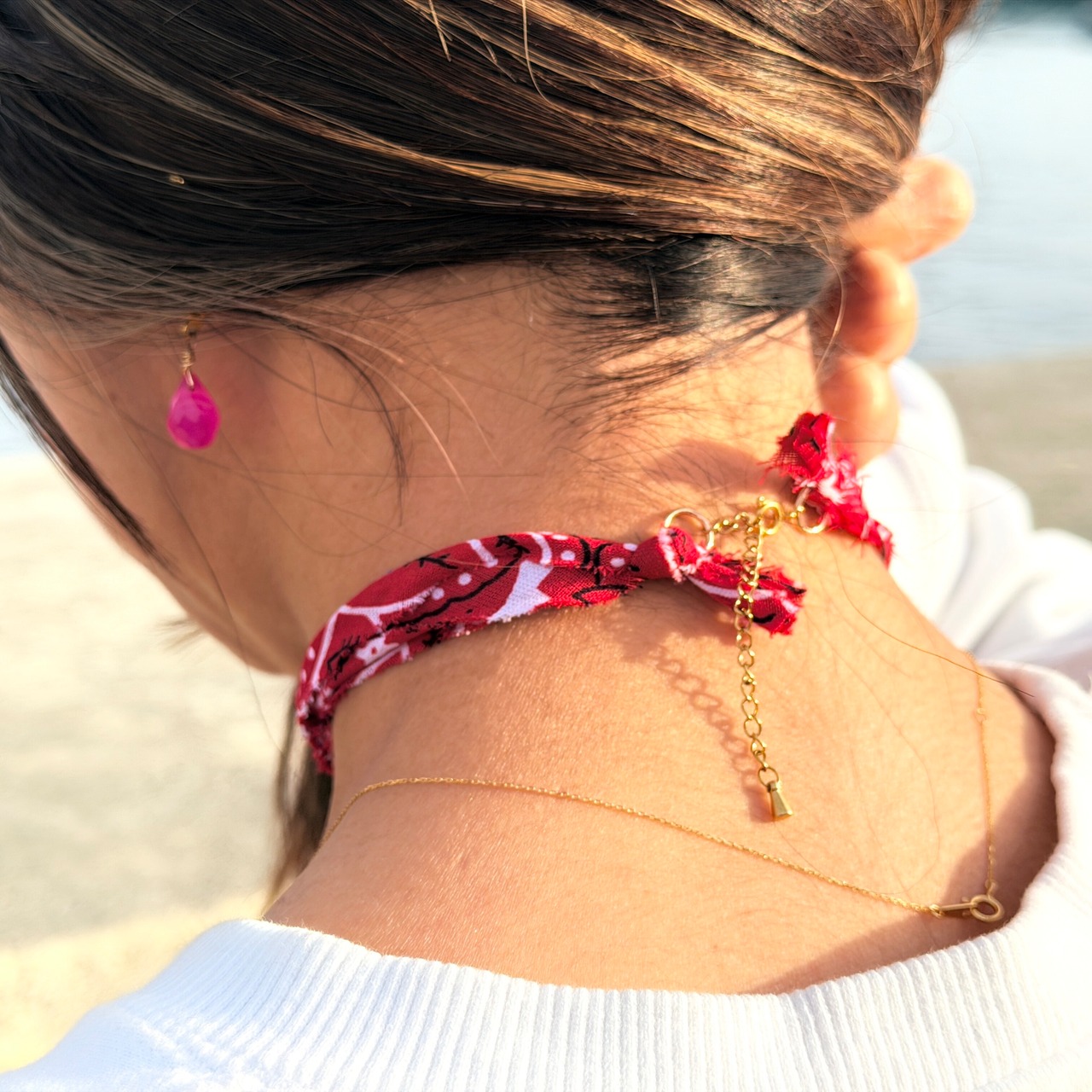 バンダナチョーカーは、あなたのコーディネートに華やかさをプラスするハンドメイドのアクセサリーです。特に推し活にぴったりなデザインで、シンプルながらも存在感があり、あなたの個性を引き立てる一品です。日常のスタイリングにアクセントを加え、お気に入りの服装に合わせてお楽しみください。